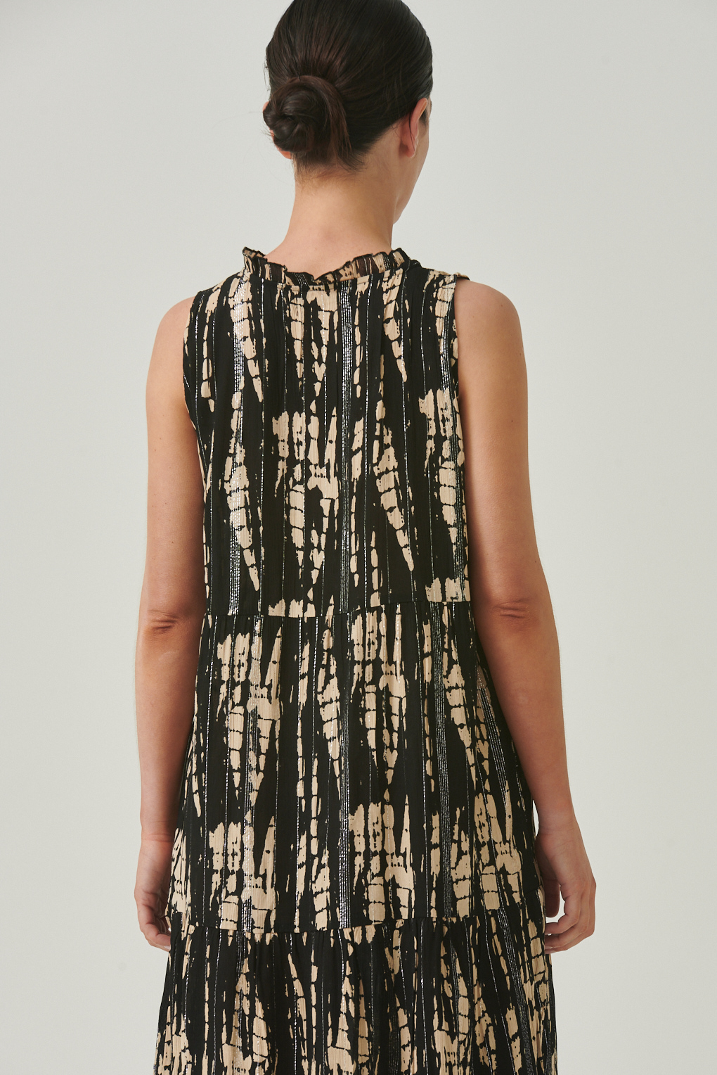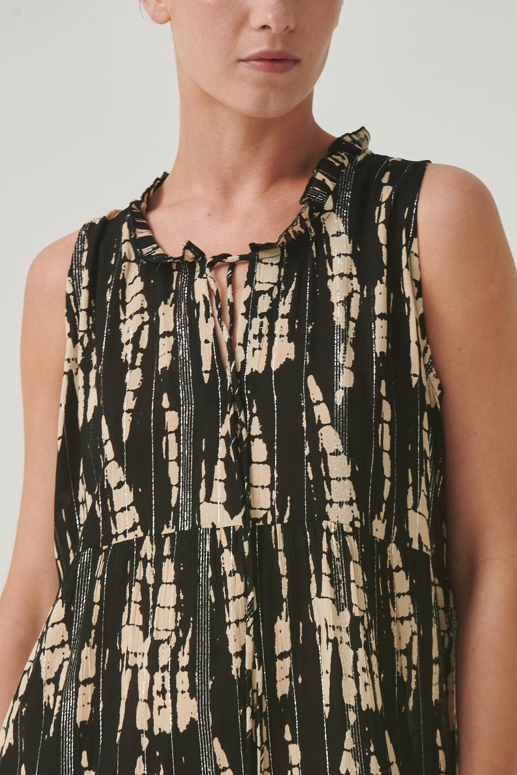 El Vestido Chenoa Long es una pieza que combina estilo y comodidad. Confeccionado en crepe de viscosa con hilos de lurex que aportan un brillo sutil, presenta un diseño largo y fluido ideal para destacar tanto de día como de noche. Su estampa única en tonos contrastantes le da personalidad y modernidad, mientras que su silueta relajada lo convierte en una prenda versátil y fresca.