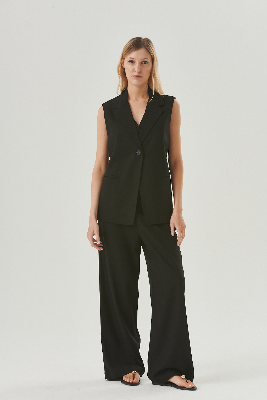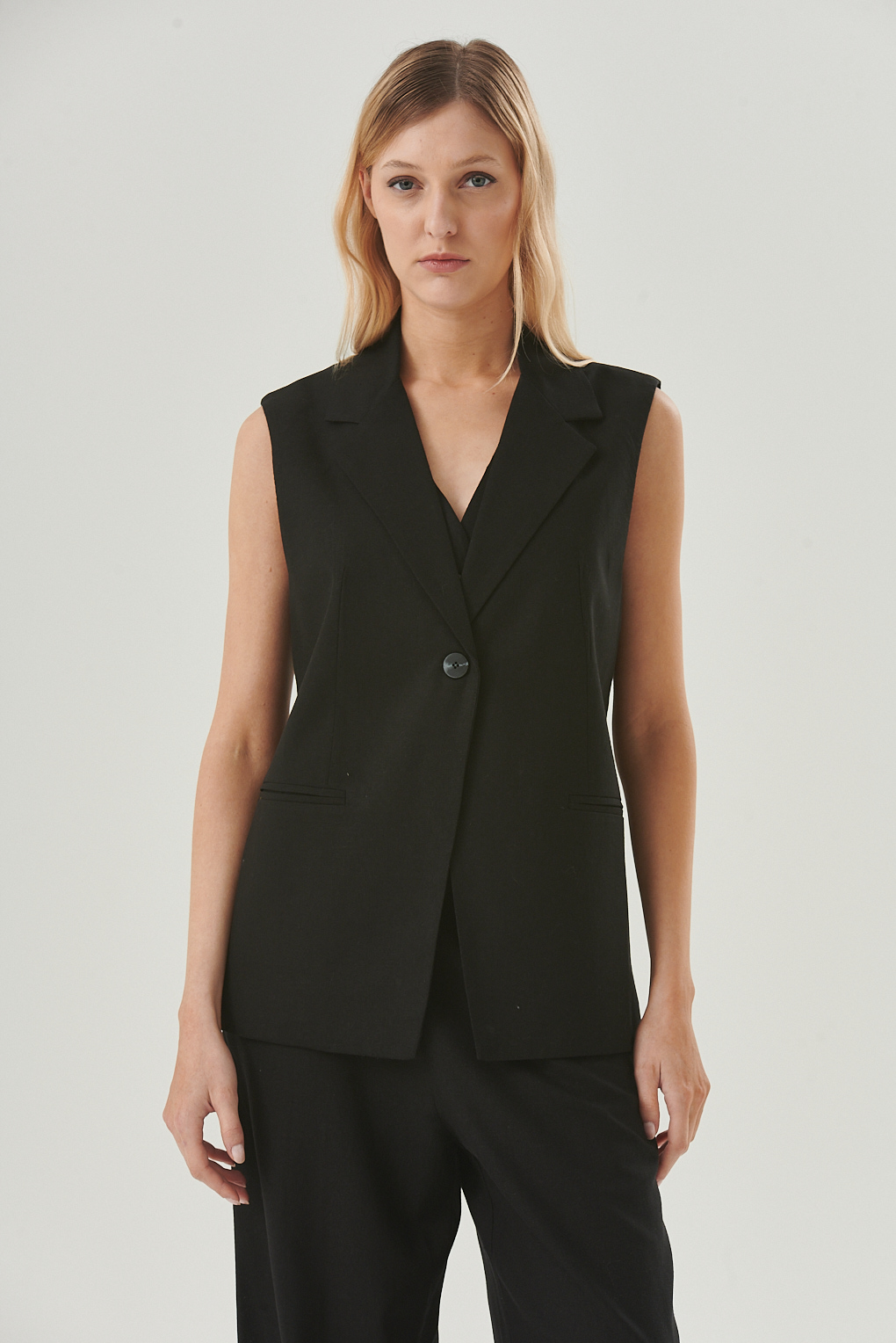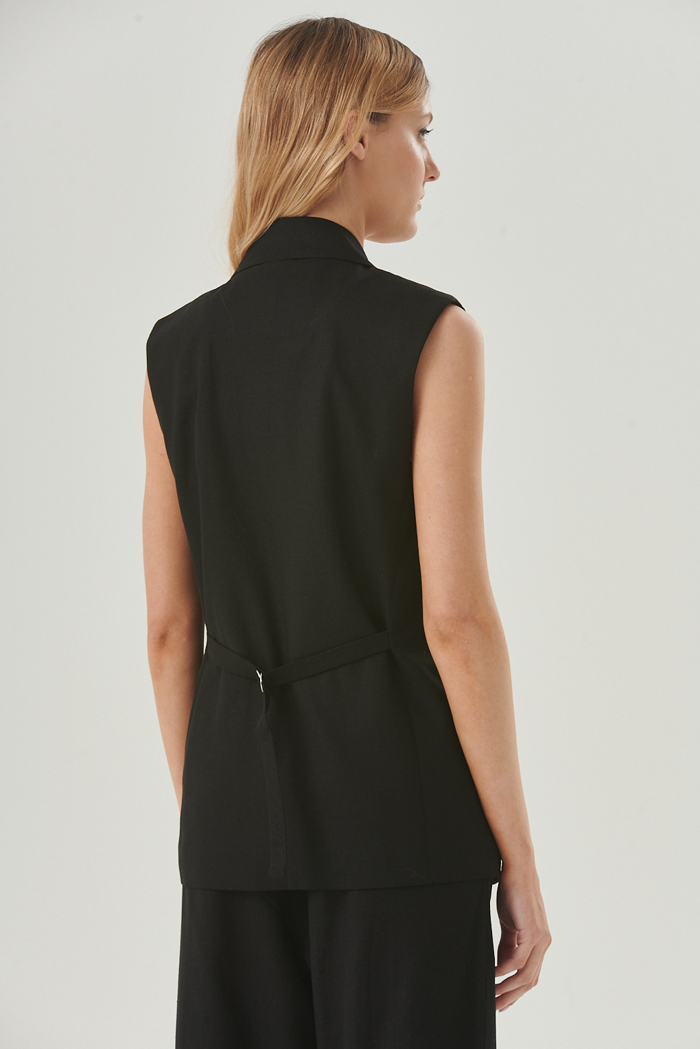 "El Chaleco Lena es una prenda versátil y sofisticada, confeccionada en lino para aportar frescura y estilo natural. Su diseño sastrero sin mangas, con solapa clásica y un botón frontal, lo convierte en un must-have para looks modernos y relajados. Incluye lazo en la espalda para ajustar el calce, logrando una silueta favorecedora. Ideal para superponer sobre tops, camisas o vestidos, es una pieza clave para elevar cualquier outfit de temporada.