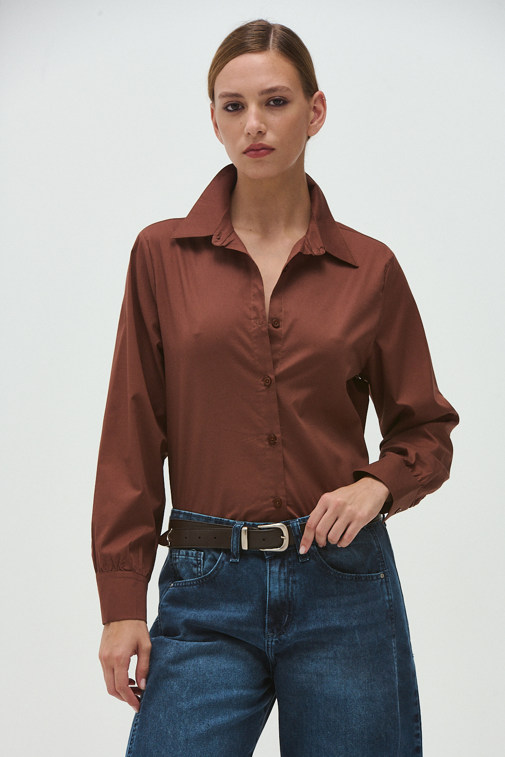 La Camisa Nuri está confeccionada en tela poplin, un material fresco, liviano y con terminación prolija. De corte clásico, presenta cuello camisero, abotonadura completa y mangas largas con puños, ideal para llevar en outfits formales o casuales. Una prenda atemporal y versátil, que se adapta a cualquier estilo y temporada.