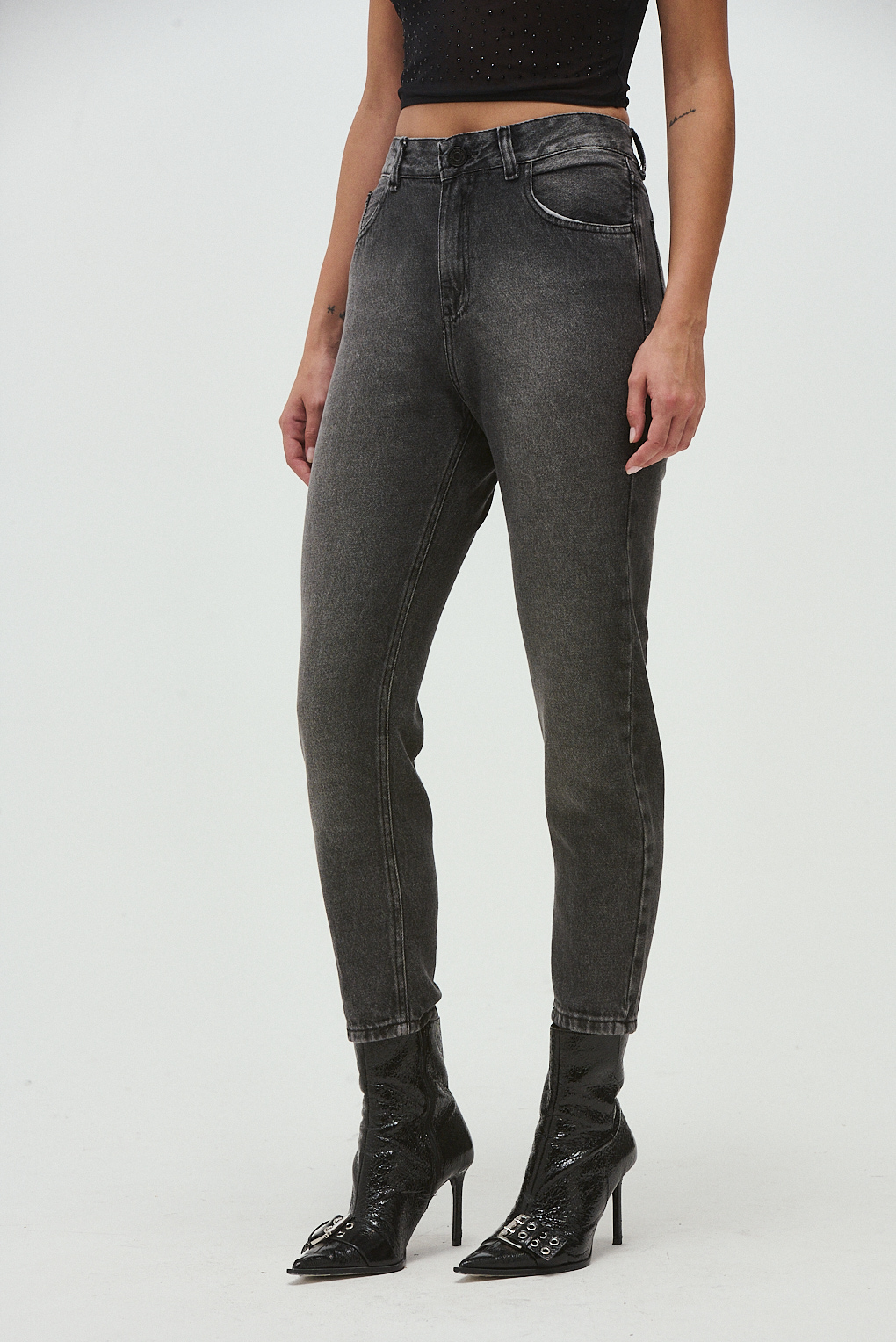 El jean MOM IBIS BLACK es ese básico con onda que necesitás en tu guardarropa. Confeccionado en denim rígido y resistente, tiene tiro alto que estiliza la figura y un corte mom fit que aporta ese aire retro pero súper actual. Su lavado gris con efecto gastado le suma carácter, mientras que el largo al tobillo lo hace ideal para combinar con zapatillas, botas o sandalias. Si buscás un jean versátil pero con mucha personalidad, este es el indicado.