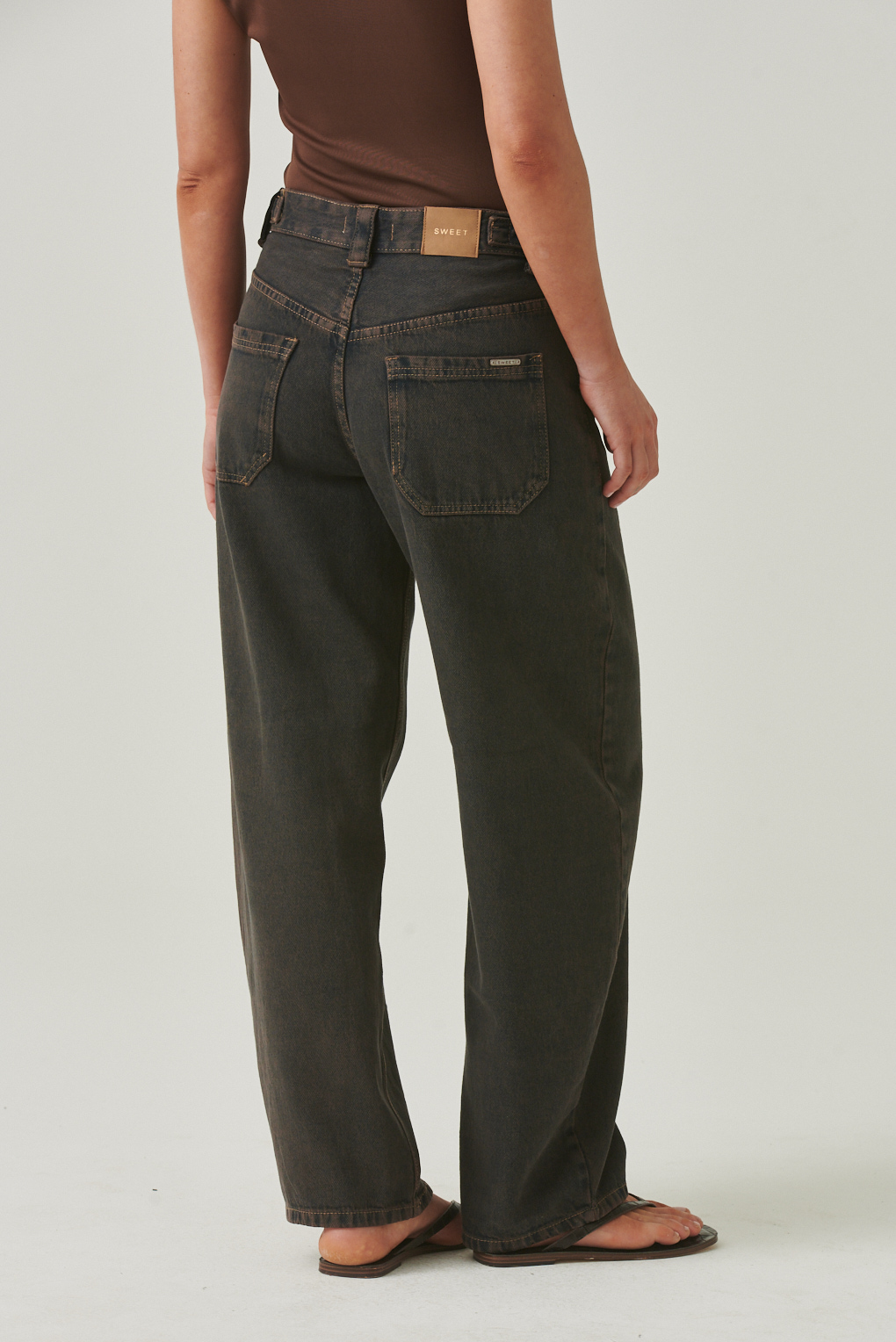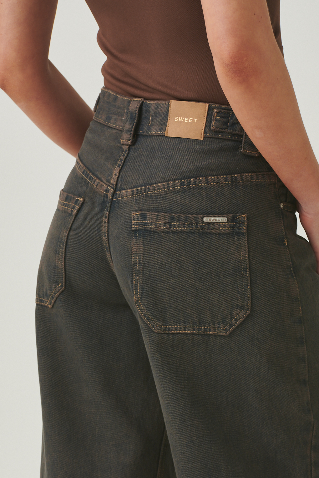 Diseñado para destacar con un calce relajado y moderno, este pantalón confeccionado en denim rígido aporta estructura y estilo. De tiro medio y corte estilo mom, ofrece una silueta levemente entallada en la cintura y más amplia en las piernas. Se distingue por su detalle en el precinto y su original color marrón oxidado, que le da un aire vintage y auténtico.