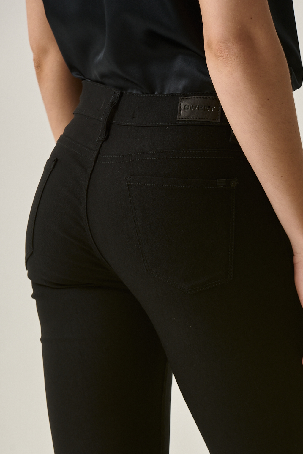 Pantalón chupín de tiro medio-alto. Posee elasticidad que le brinda comodidad absoluta a la prenda, y a su vez, muy buen calce. Es versátil ya que podes utilizarlo para el día o para la noche. Prenda exclusiva de nuestra línea Denim Second Skin. Textil: Bengalina.