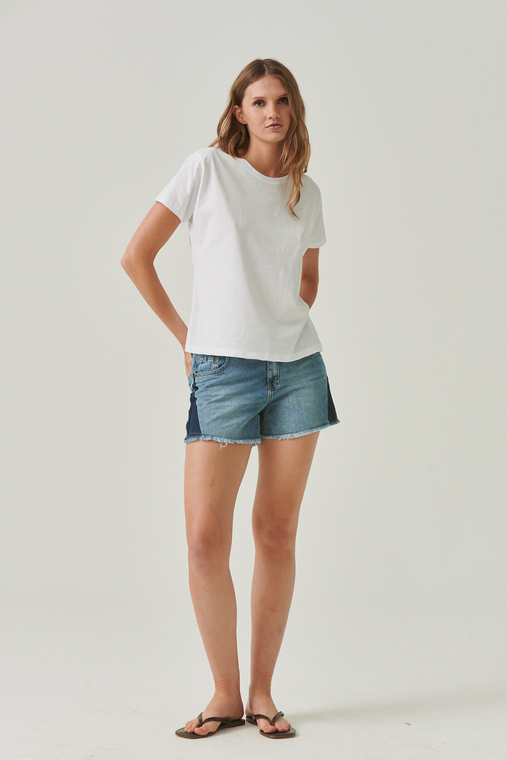 La Remera Burke, es un modelo de remera clásico y básico infaltable confeccionada en algodón. Es manga corta, con cuello redondo, su color liso y su largo es a la cadera. La Burke completa un outfit con cualquiera de nuestros modelos de la línea Denim. ¡Para acompañarte siempre!.