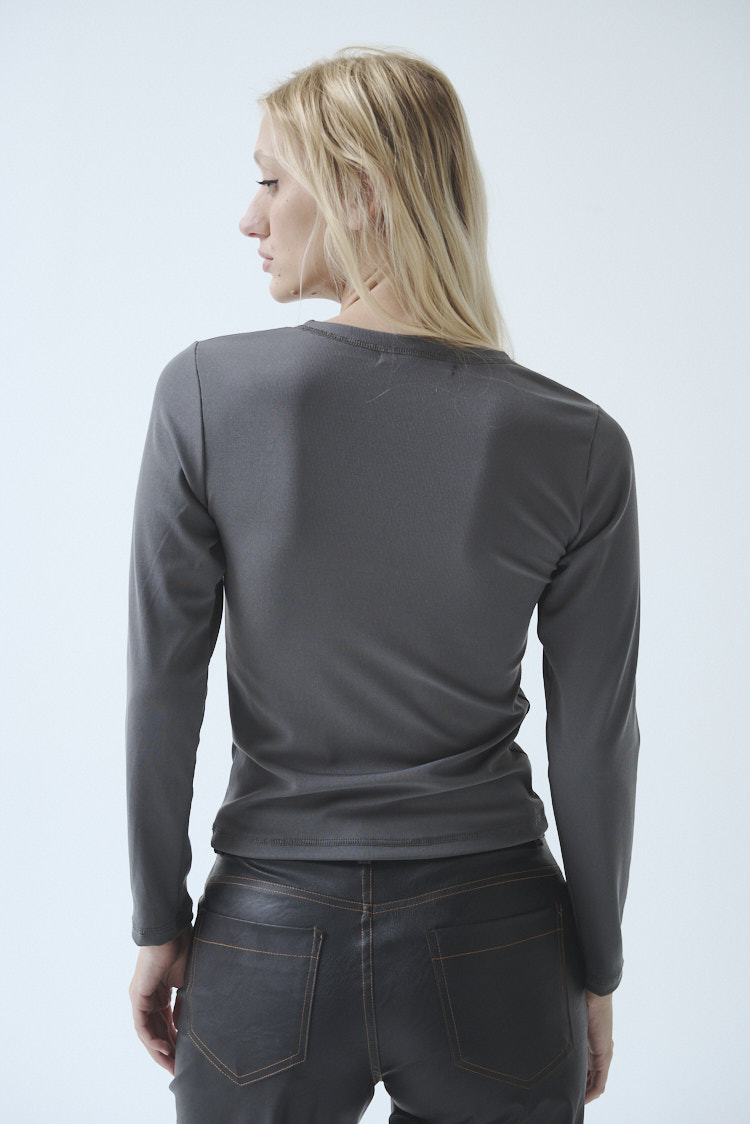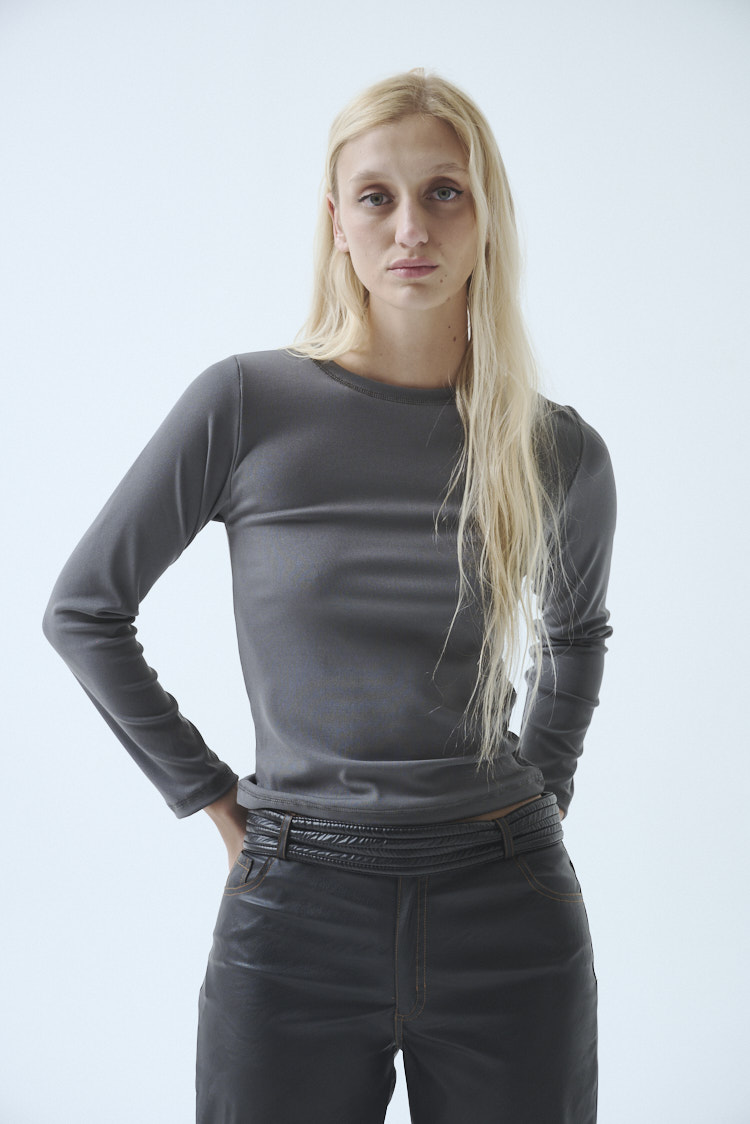 La remera ML Aiden de corte adherente, es una prenda básica con cuello redondo cerrado y largo hasta la cadera. Una prenda comodín para completar tu outfit.