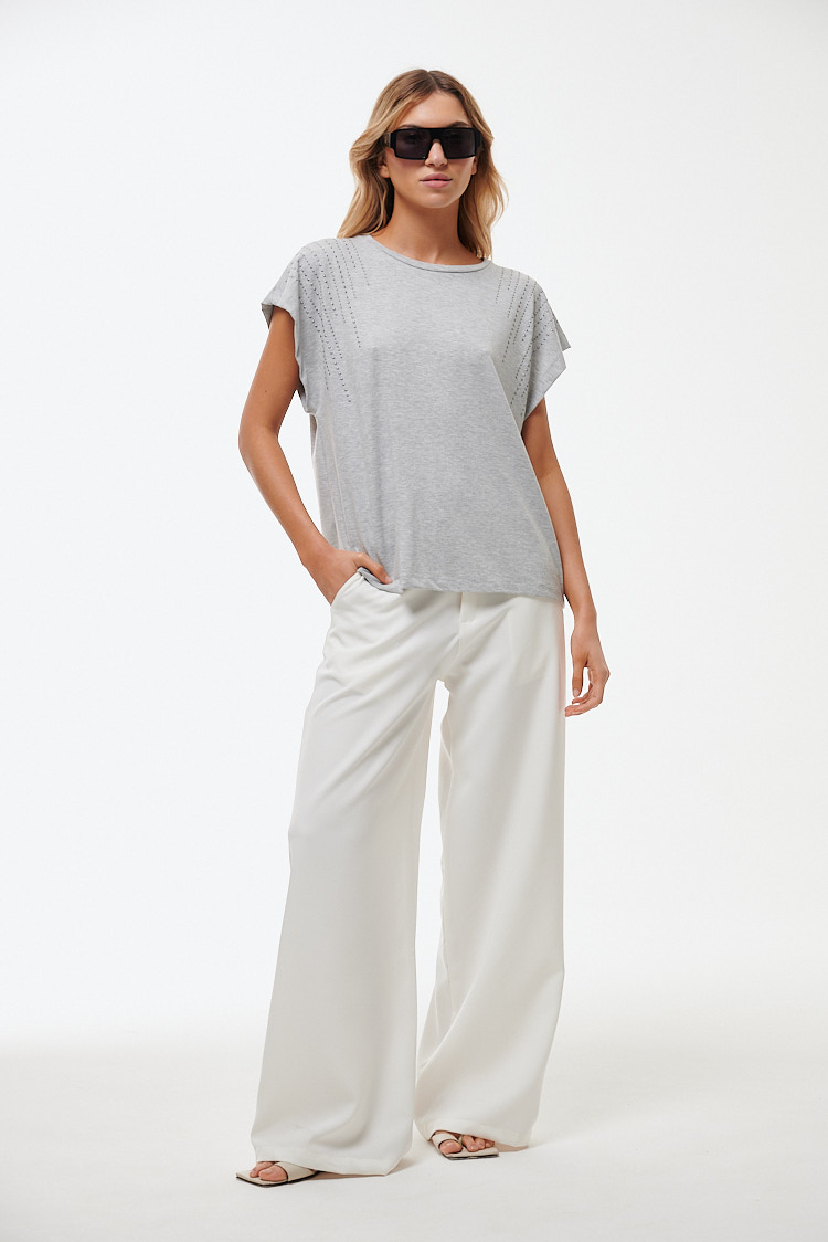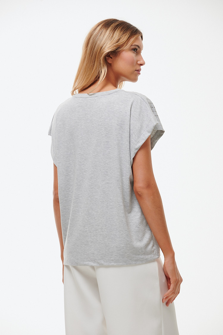 Si buscas una prenda que combine comodidad y estilo, la Remera Lili es perfecta para vos. Confeccionada en modal, un tejido suave, ligero y con una caída impecable, esta remera se adapta a tu cuerpo de forma elegante y favorecedora. El detalle de brillos en los hombros le añade un toque sofisticado y glamoroso, ideal para elevar cualquier look, ya sea para el día o la noche.