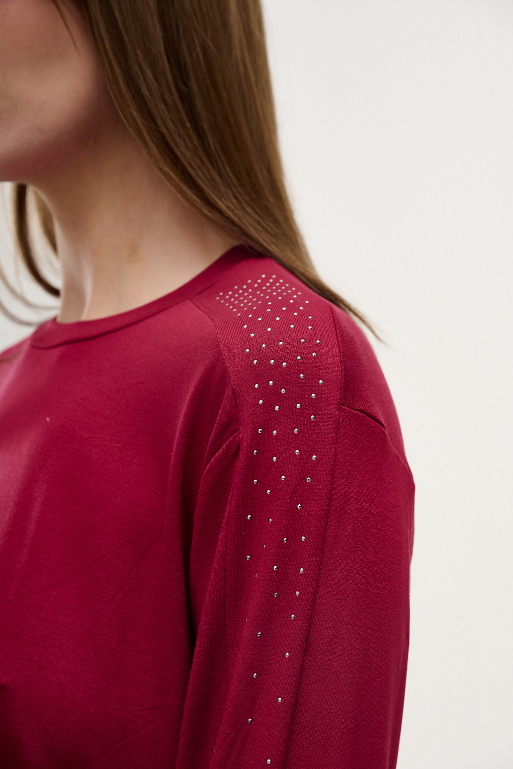 Remera de manga larga confeccionada en suave modal, ideal para sumar estilo y comodidad al día a día. De calce suelto y cuello redondo, se adapta con fluidez al cuerpo sin ajustar. El detalle diferencial está en sus mangas decoradas con brillos a lo largo, que le aportan un toque sutil de brillo y elegancia, sin perder la simpleza.