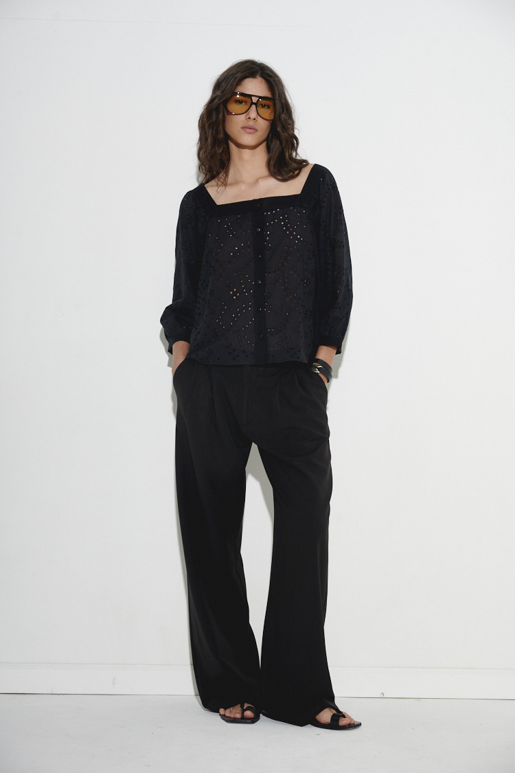 Armá tu outfit combinando diferentes texturas y estilos para no pasar desapercibida. Encontrá el MATCH ideal de la Blusa Anturia con nuestros WIDE LEG SWEET.