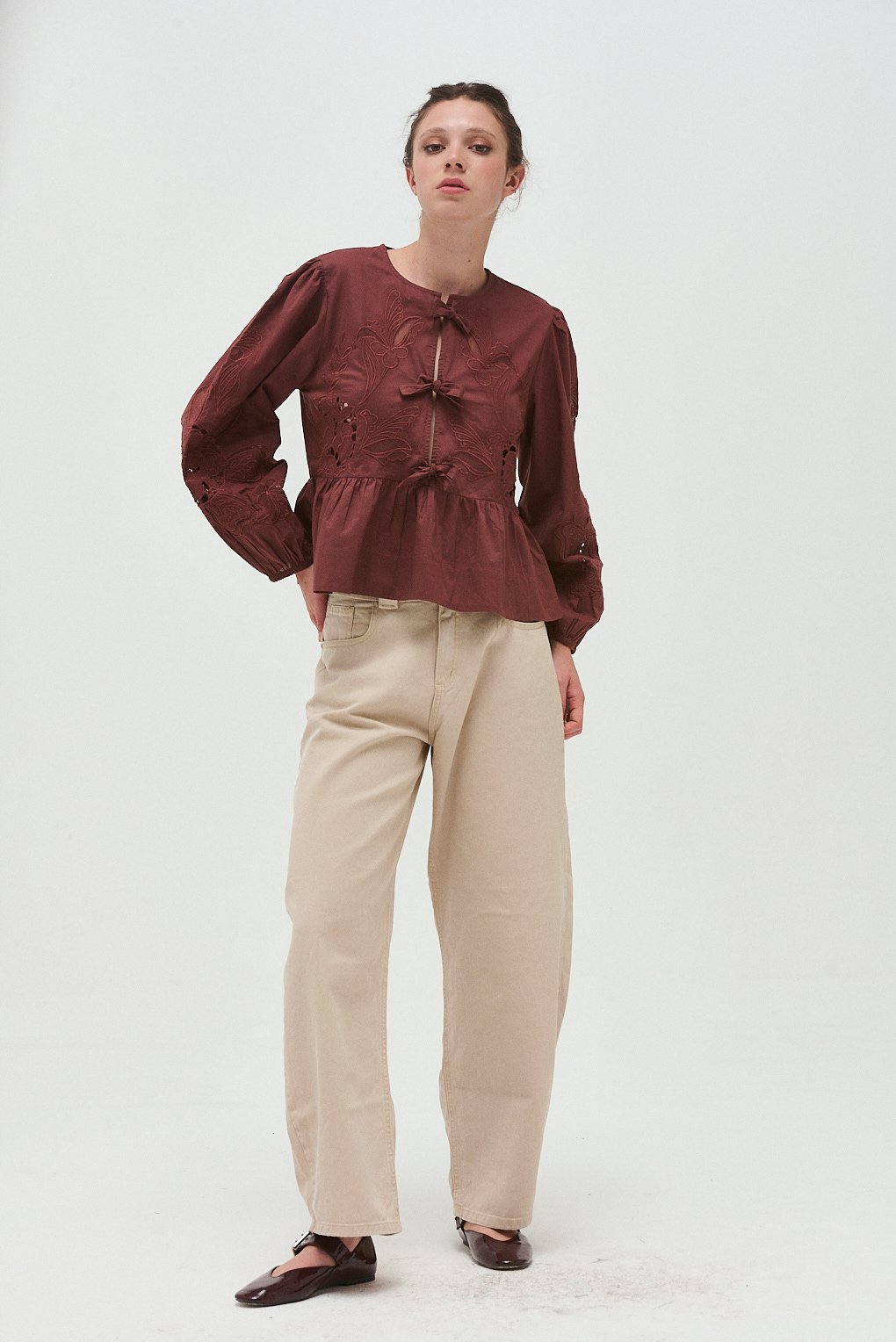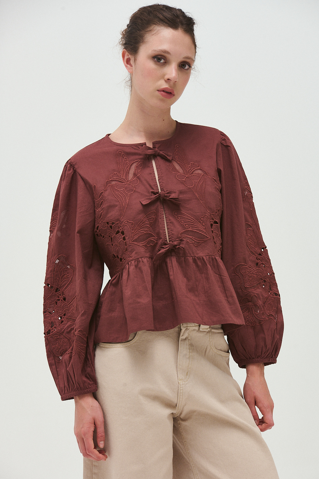 La Blusa Florinda combina delicadeza y carácter en una prenda protagonista. Confeccionada en viscosa, presenta bordados trabajados en el frente y mangas que aportan textura y detalle visual. Su diseño se completa con recortes calados y una caída fluida que realza el movimiento, logrando un equilibrio perfecto entre lo romántico y lo sofisticado. Ideal para elevar looks diarios o acompañar outfits más especiales de invierno.