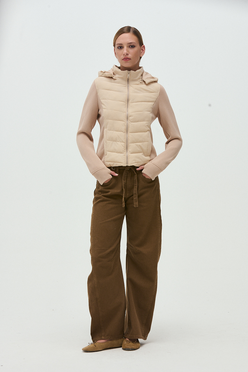 La campera Fabbi es una opción versátil y funcional para acompañarte todos los días. Su frente matelaseado aporta abrigo y un detalle moderno, mientras que las mangas y espalda en tejido suave garantizan comodidad y libertad de movimiento. Cuenta con cierre frontal y bolsillos laterales prácticos. La capucha desmontable con cordón de ajuste permite adaptarla según el clima o el look que busques. Además, incorpora puños con abertura para el pulgar, sumando un plus de confort y abrigo. Ideal para combinar con jeans, joggers o outfits relajados para un estilo urbano y actual.