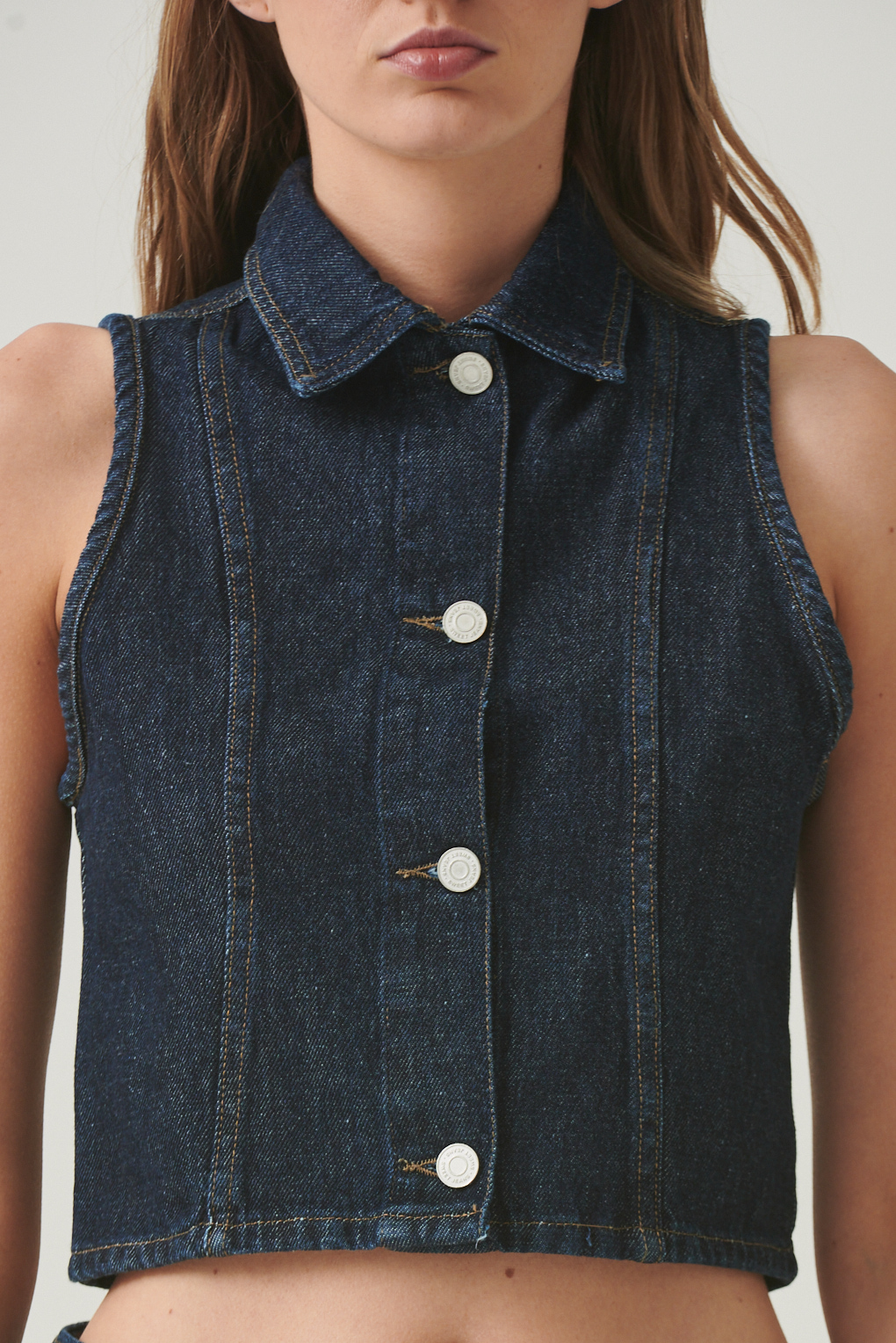 El Chaleco Fiyi está confeccionado en denim de algodón liviano, ideal para aportar estilo y frescura en los días más cálidos. Su diseño sin mangas y abierto al frente con lazos anudados lo convierte en una prenda moderna y canchera, perfecta para usar sola o superpuesta con tops básicos. Con un calce cómodo y ligero, es la opción ideal para armar conjuntos descontracturados con shorts, jeans o pantalones amplios. Una prenda clave para sumar personalidad a tu look de verano.