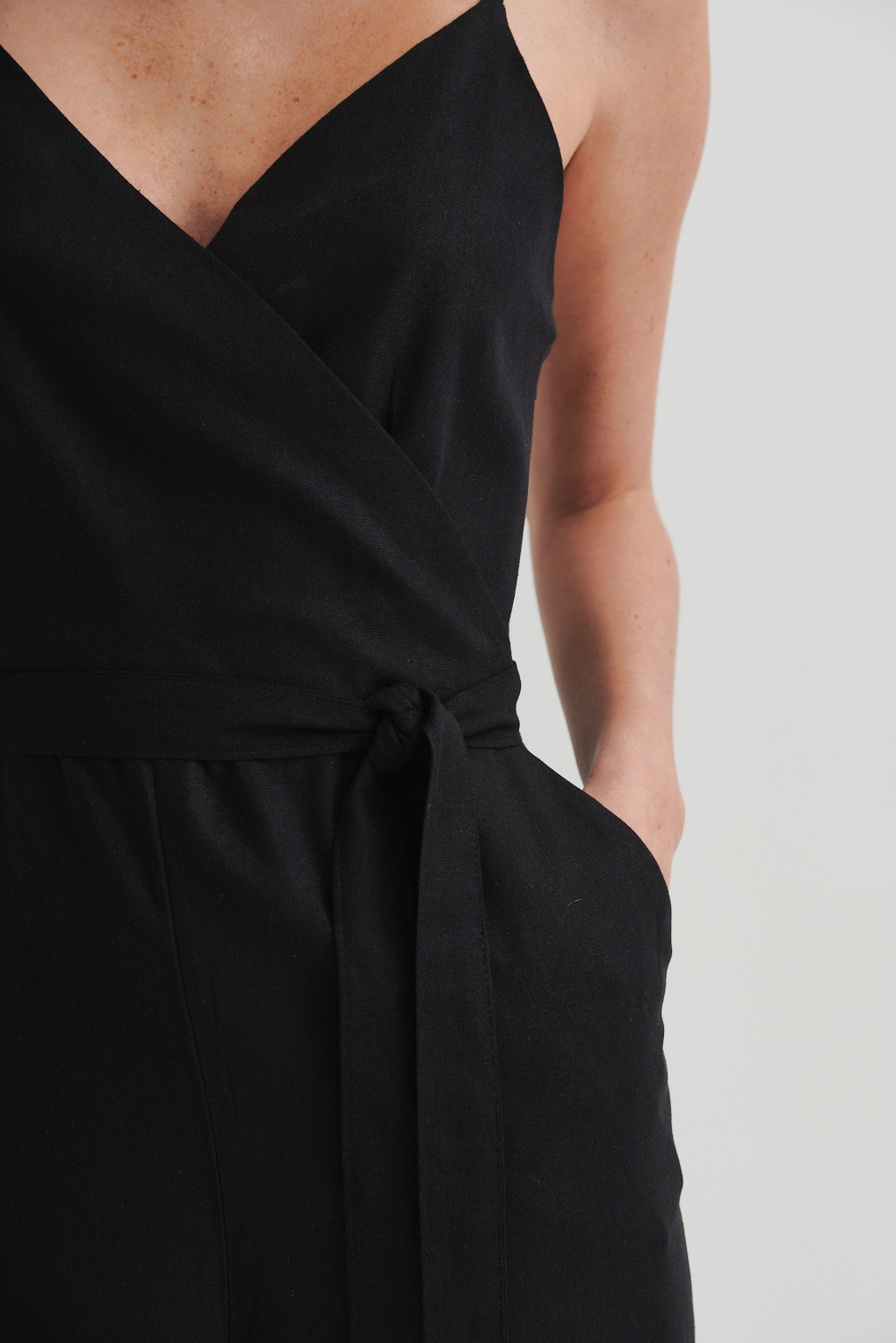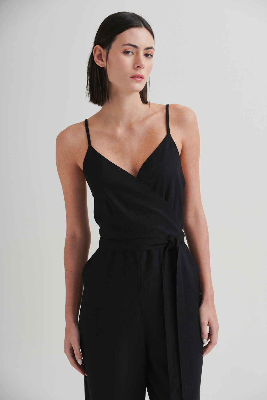 El Mono Aspen está confeccionado en lino liviano y fresco, ideal para esos días en los que querés estar cómoda sin resignar estilo. Su diseño incluye escote cruzado, breteles finos regulables y un lazo para definir la cintura. Su largo completo lo convierte en una opción versátil, tanto para el día con sandalias como para la noche con accesorios que levanten el look. Simple, elegante y con actitud.