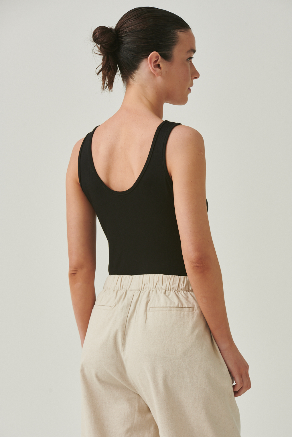 Descubre la versatilidad y el confort de nuestra musculosa básica confeccionada en tela modal, un material que redefine la suavidad y la frescura. Con un corte clásico y escote redondeado, se adapta a cualquier tipo de cuerpo, ofreciendo un ajuste relajado pero favorecedor.