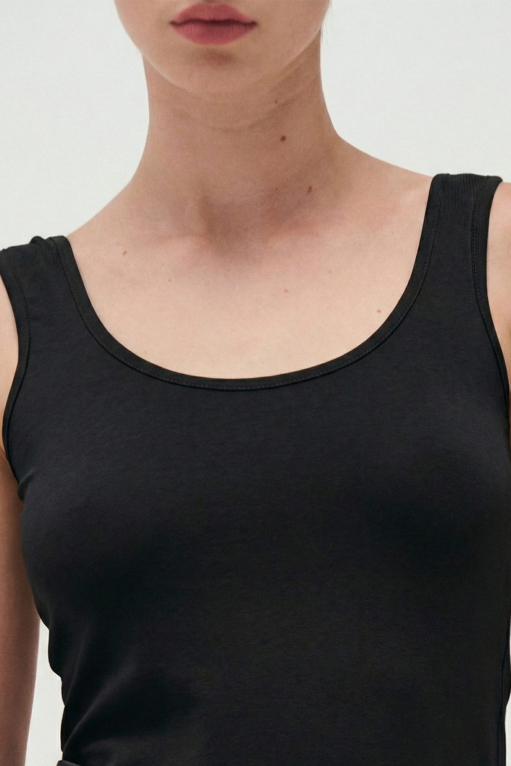 Descubre la versatilidad y el confort de nuestra musculosa básica confeccionada en tela modal, un material que redefine la suavidad y la frescura. Con un corte clásico y escote redondeado, se adapta a cualquier tipo de cuerpo, ofreciendo un ajuste relajado pero favorecedor.