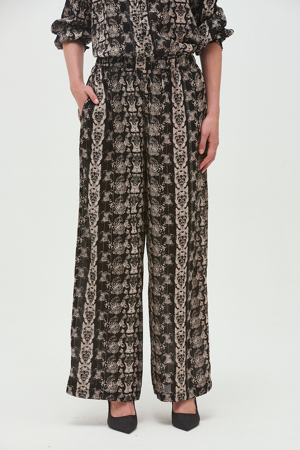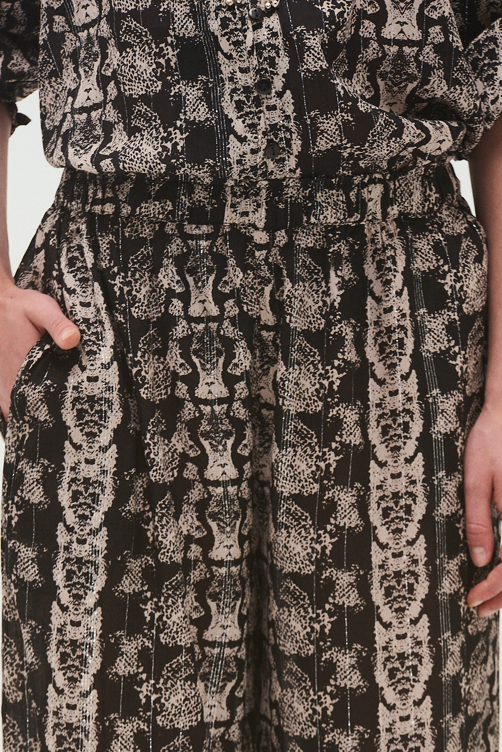 El Pantalón Krait está confeccionado en viscosa con lurex, logrando una caída suave y un brillo delicado que suma personalidad sin exagerar. Su diseño cómodo y liviano lo hace ideal para usar tanto de día como de noche, combinando confort y estilo.