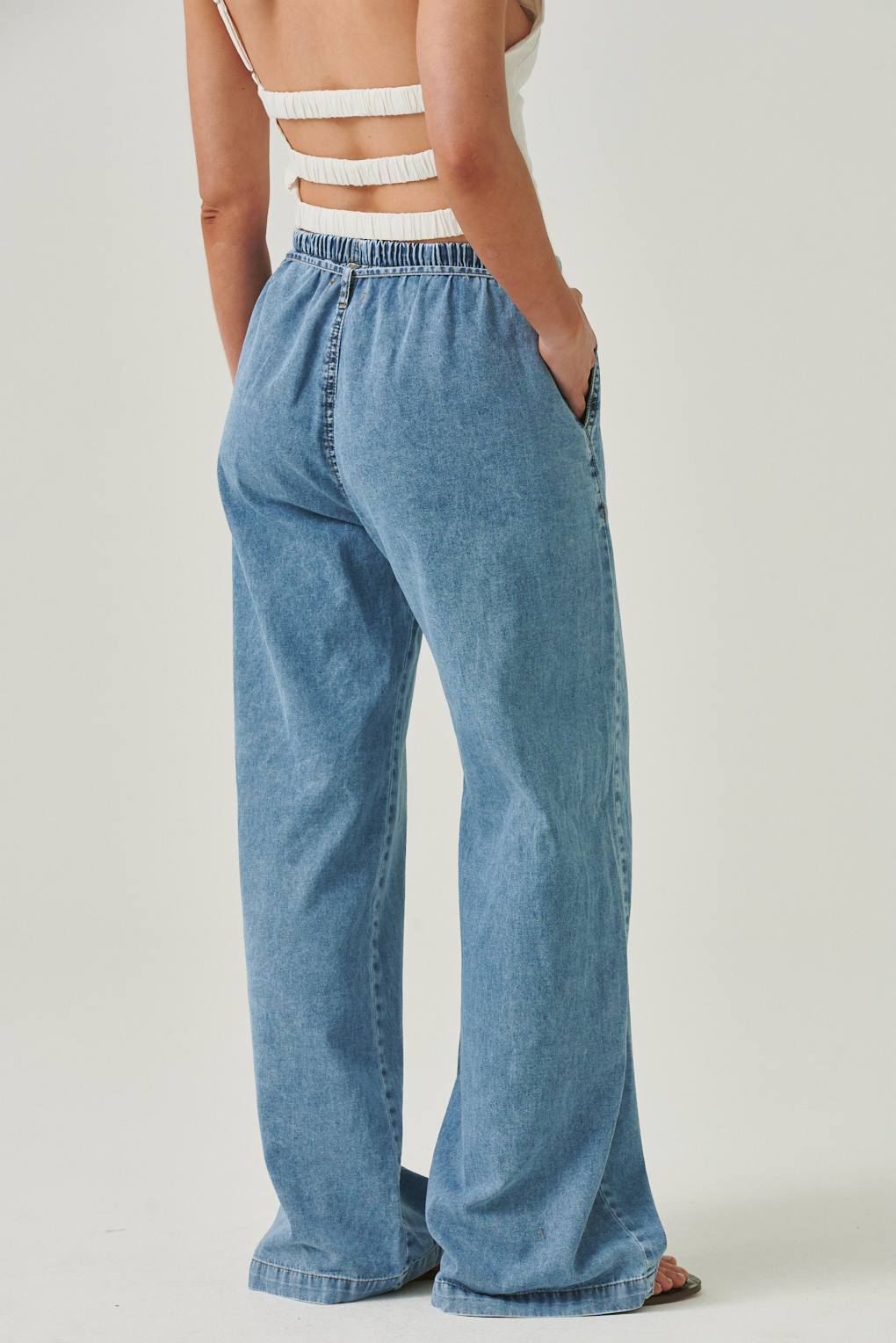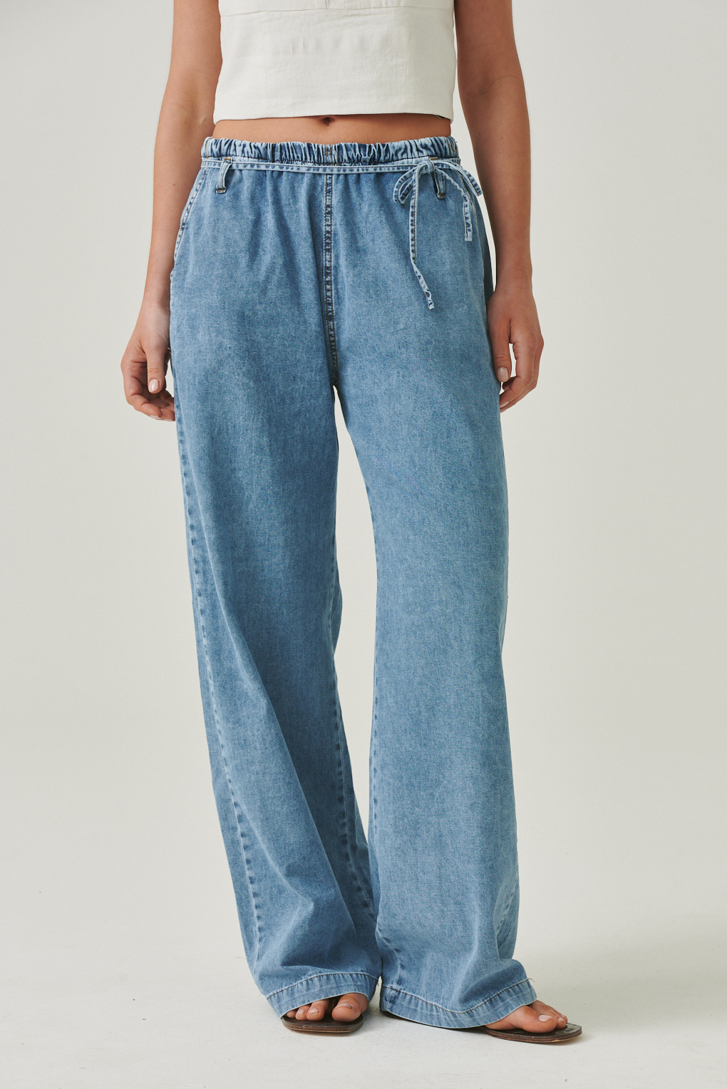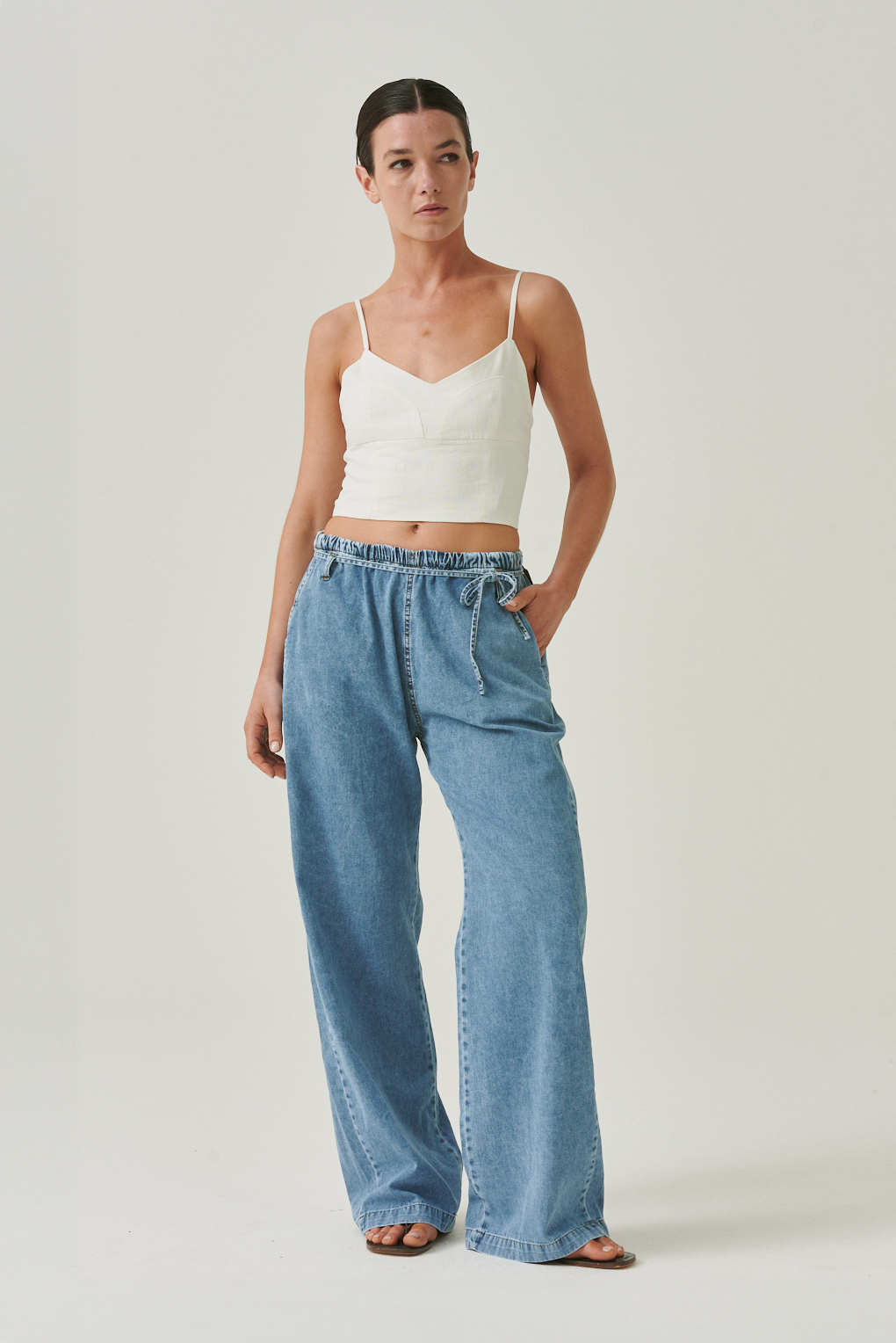 El Pantalón Ross está confeccionado en denim de algodón de textura liviana, pensado para brindar frescura y comodidad en los días cálidos. Su diseño wide leg con calce suelto lo convierte en una prenda versátil y canchera, perfecta para usar tanto en la ciudad como en la playa. La cintura elastizada con lazo ajustable suma practicidad y estilo, mientras que su caída fluida realza la silueta con un aire relajado. Una pieza atemporal que no puede faltar en tu guardarropa de verano.