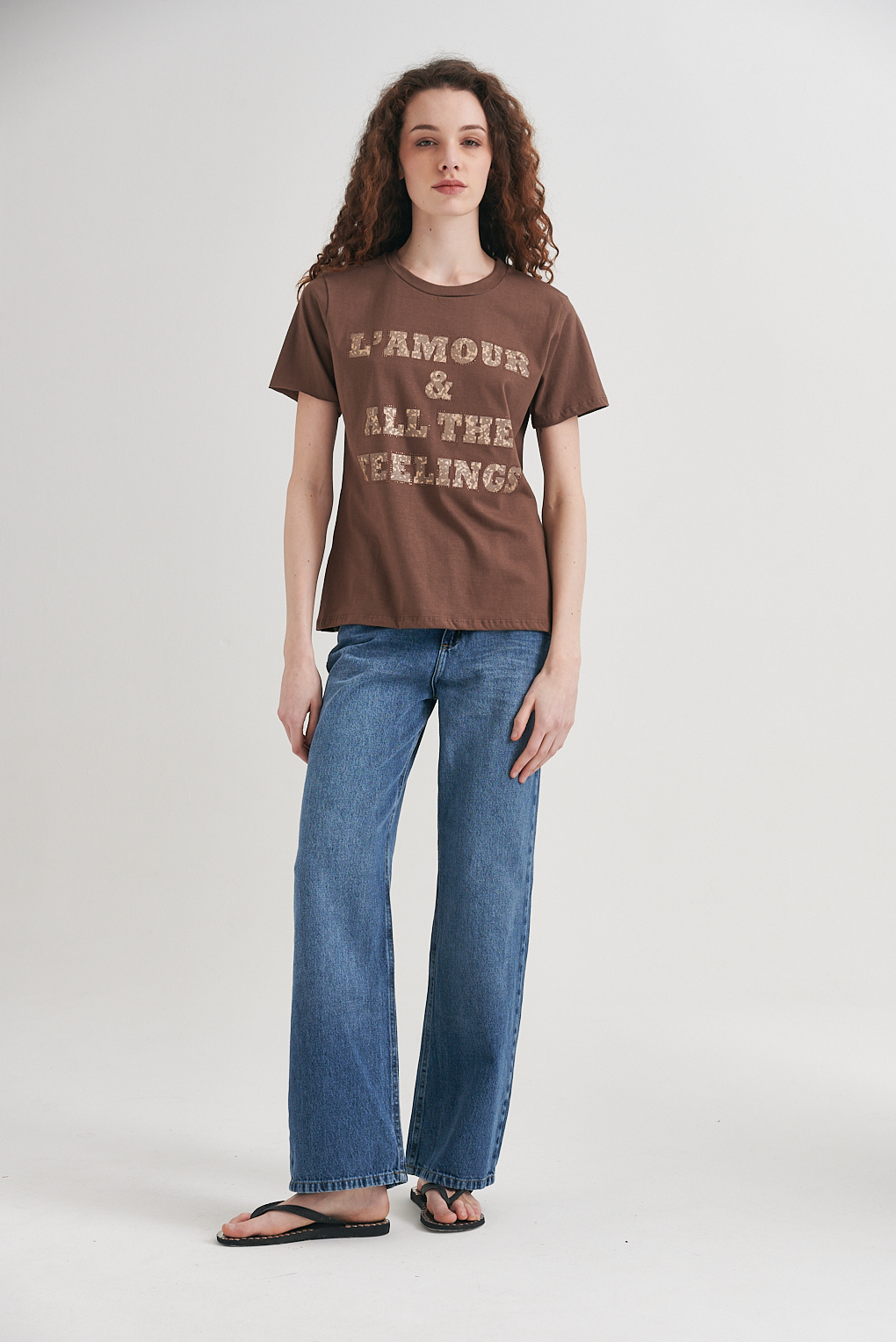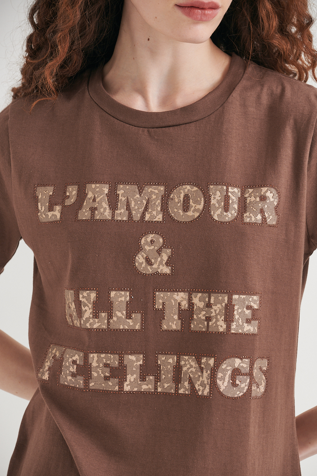 Esta remera está confeccionada en algodón, ofreciendo una textura suave y cómoda para el uso diario. Presenta un diseño clásico con cuello redondo y mangas cortas, acompañado por una estampa frontal con la frase "L'AMOUR & ALL THE FEELINGS", que aporta un toque moderno y expresivo. Su fit relajado la convierte en una prenda versátil, ideal para combinar con jeans, shorts o polleras, logrando looks casuales y con personalidad.