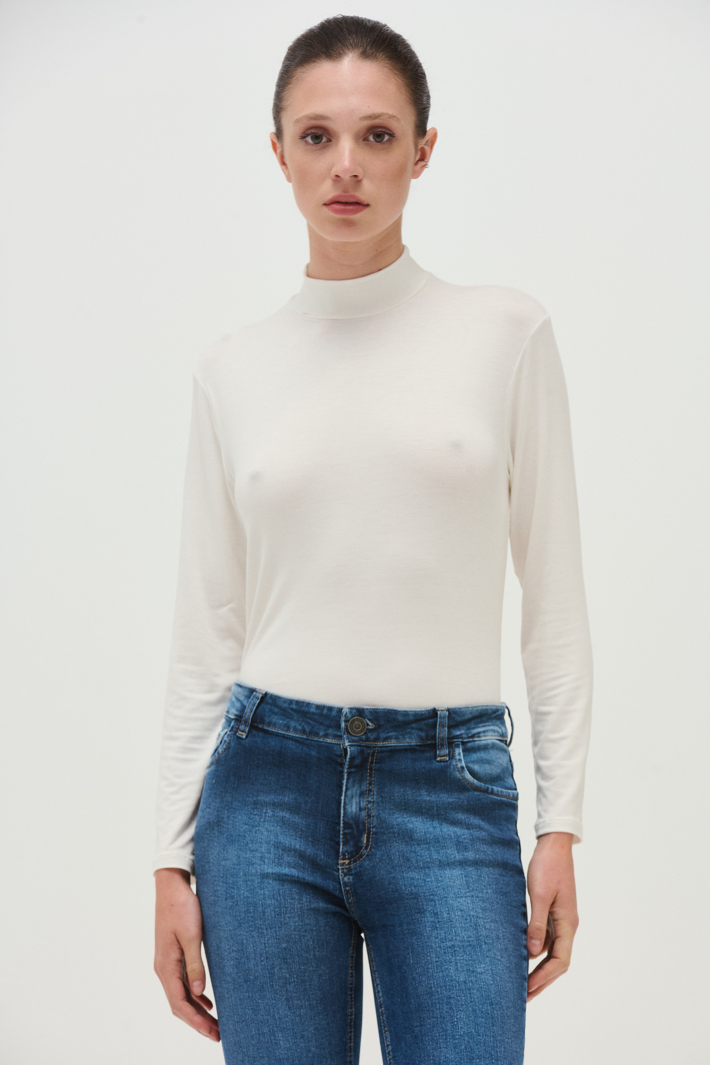 La Remera Zoe es ese esencial que resuelve looks todos los días. Confeccionada en viscosa con lycra, tiene una textura suave, liviana y elastizada que se adapta al cuerpo sin ajustar de más. El cuello alto suma abrigo y un toque prolijo, ideal para usar debajo de sweaters, blazers o camperas, o sola en looks simples y elegantes.