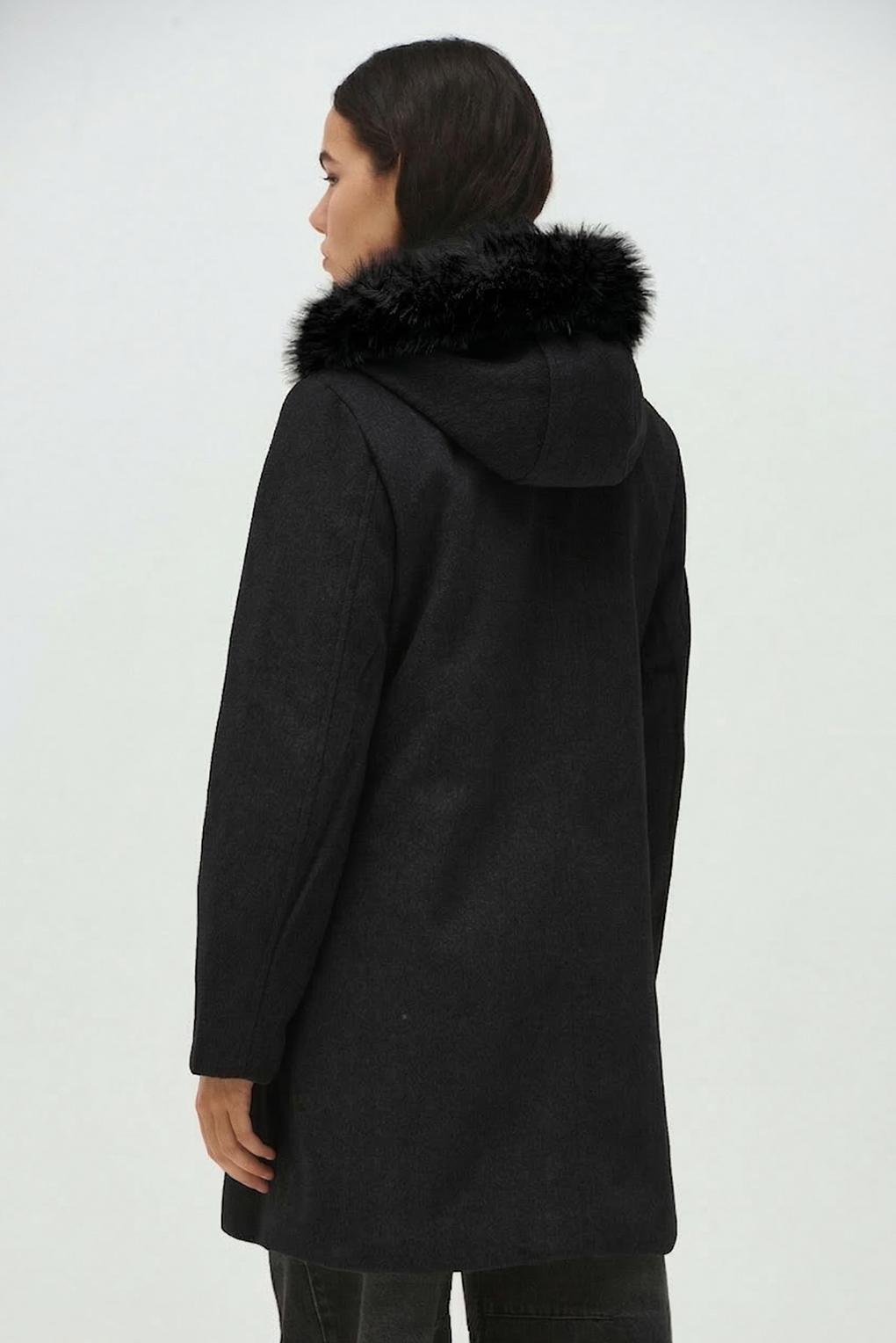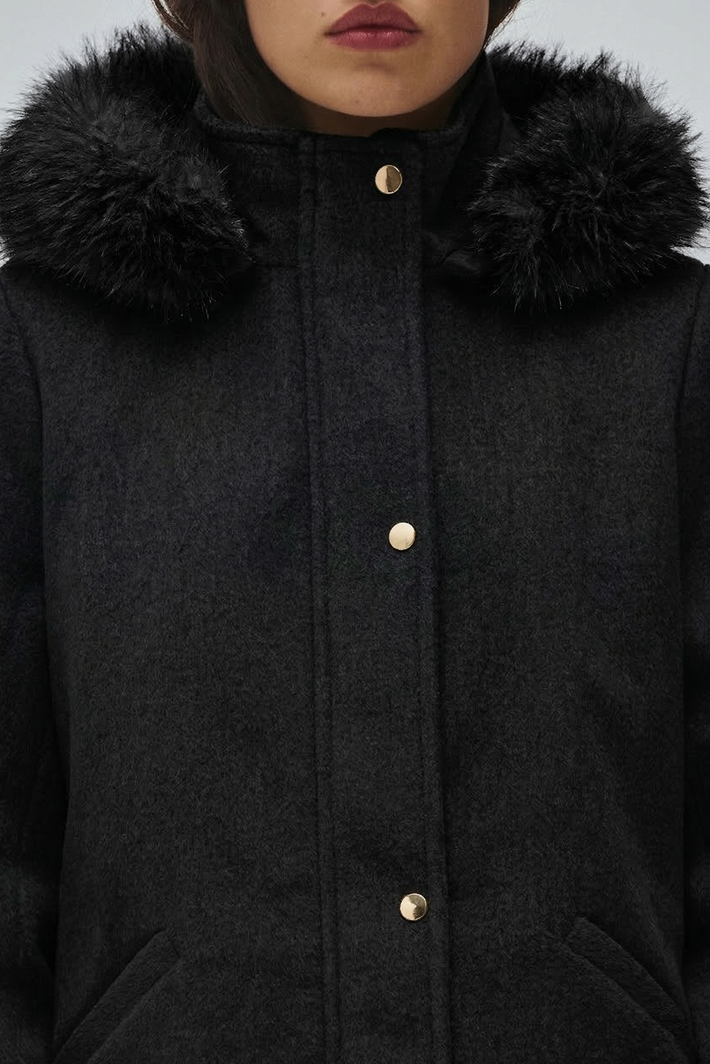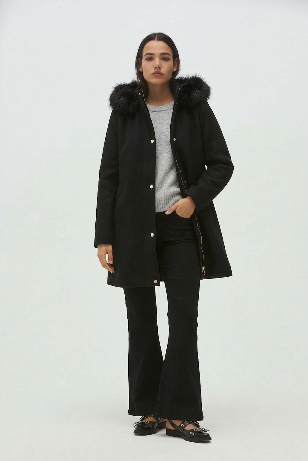 El tapado Ewan es la prenda ideal para acompañarte en los días más fríos con estilo y funcionalidad. Confeccionado en paño de calidad, cuenta con forro interno que aporta abrigo extra sin resignar comodidad. Su diseño incluye cierre frontal combinado con botones a presión, brindando practicidad y un acabado moderno. La capucha desmontable con detalle de pelo sintético permite adaptarlo según el clima o el look que busques. Versátil y fácil de combinar, queda perfecto con jeans, pantalones sastreros o outfits más relajados para el día a día.