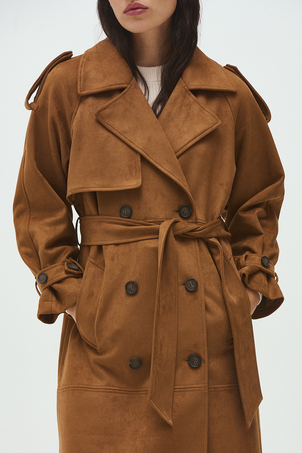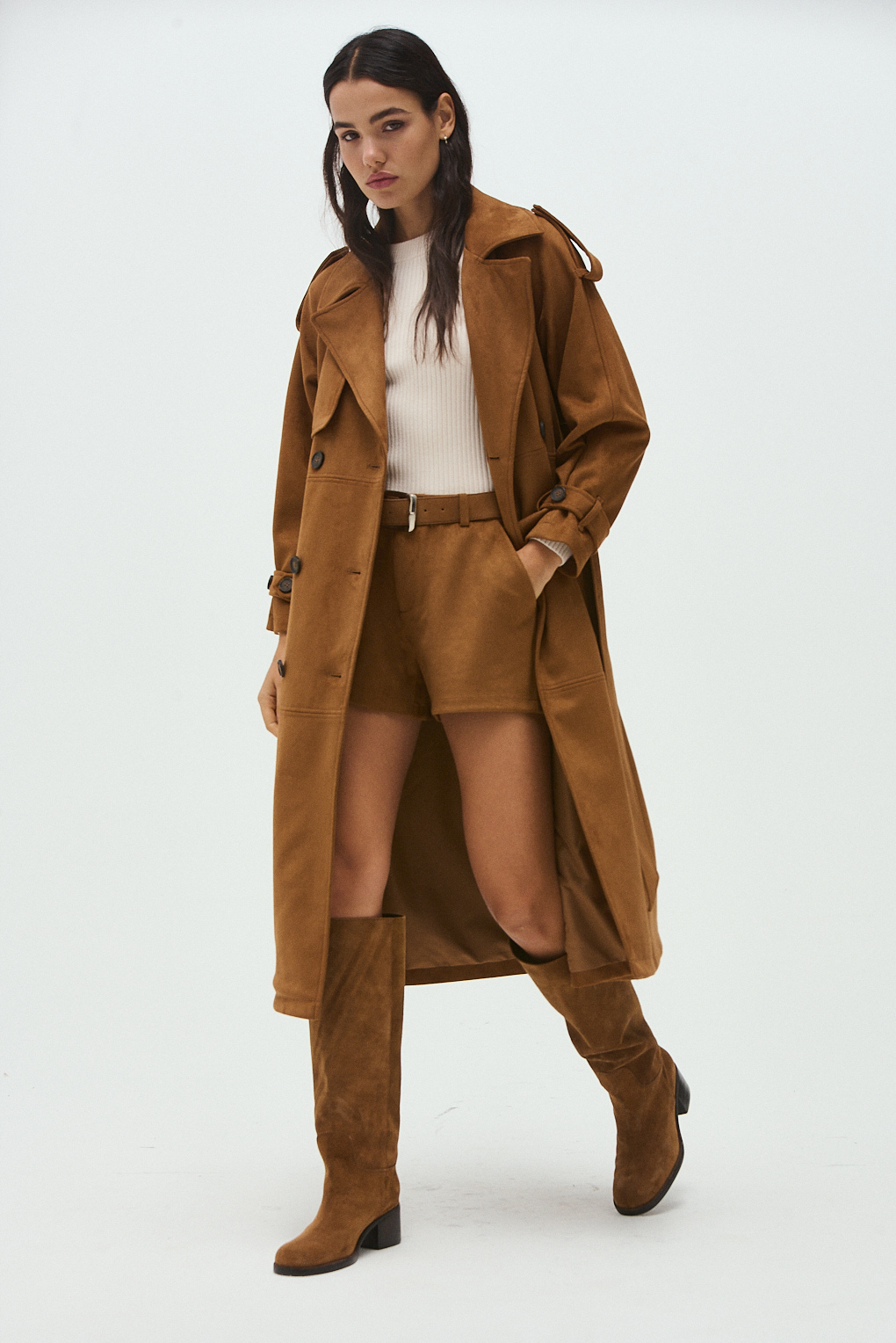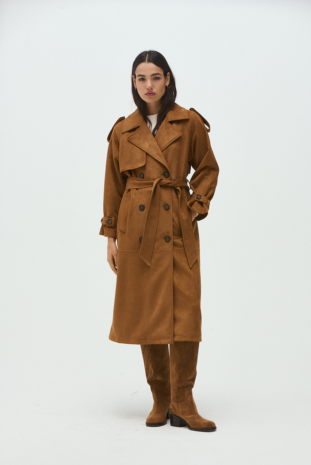El Trench Rebeca está confeccionado en tela suede con forrería interna, ideal para sumar abrigo sin perder estilo. Su diseño atemporal tipo trench lo convierte en un infaltable de temporada: elegante, versátil y fácil de combinar tanto con looks urbanos como más sofisticados. El calce es cómodo y favorecedor, perfecto para usar abierto o cerrado, sobre vestidos, sweaters o prendas más livianas. Un abrigo pensado para elevar cualquier outfit con un toque chic y moderno.