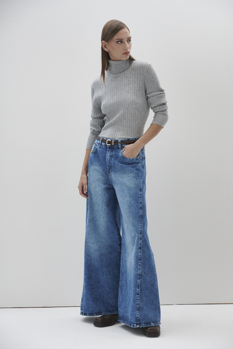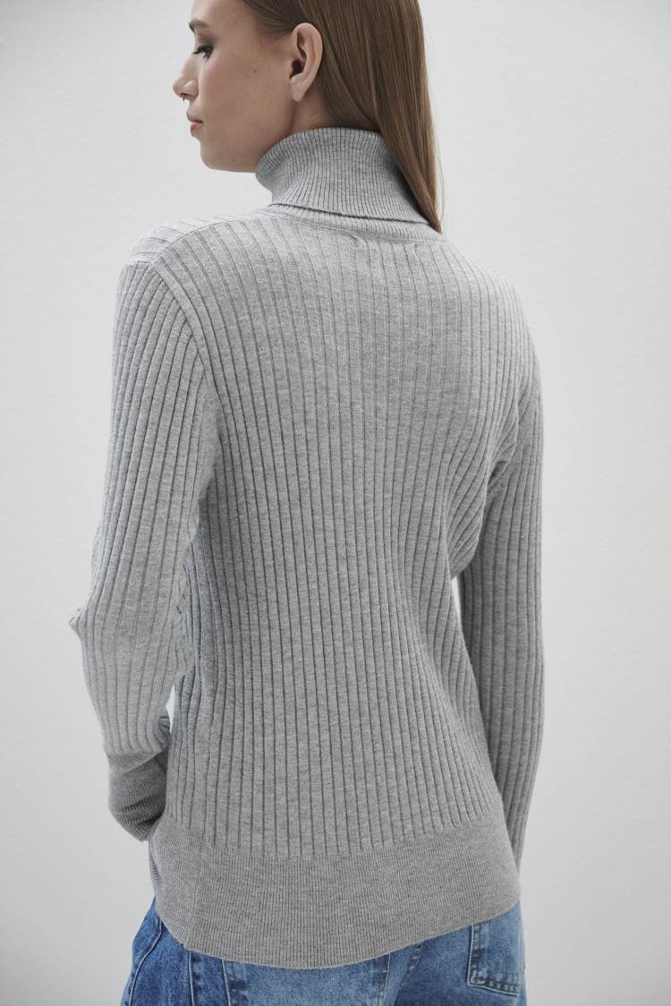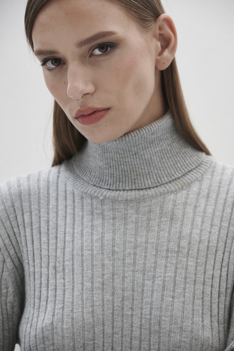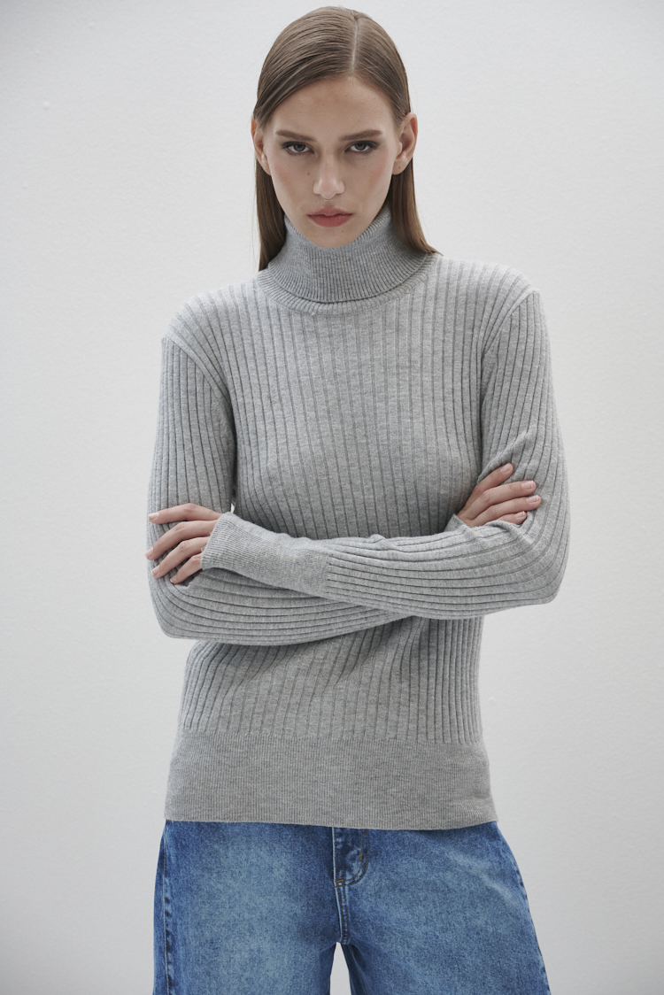 Su diseño acanalado le da un toque moderno y dinámico, mientras que el cuello alto aporta calidez y elegancia.